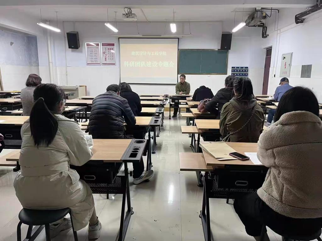 11月11日下午,建筑学院在4413组织召开了科研团队建设专题会议,学校科技处王勇强处长出席,建筑学院李建平书记及全体教职工参加。