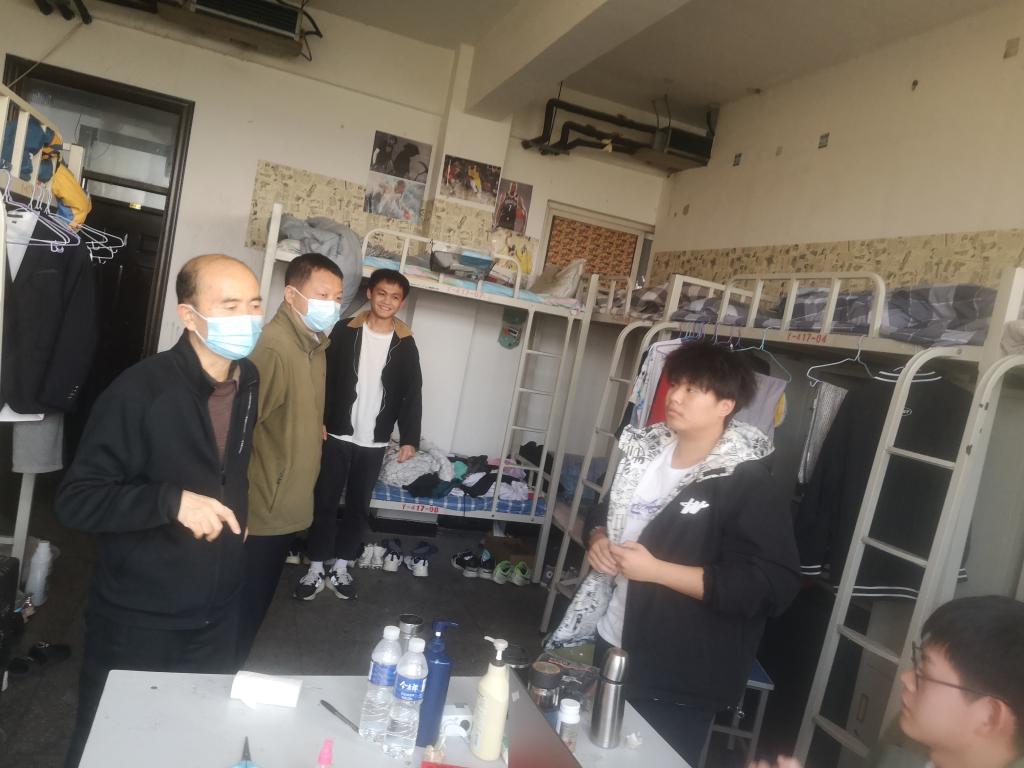 走访结束后,两位领导表示,员工公寓是新时期高校育人最基本、最重要的载体和平台之一,今后要更加重视、切实履责,扎实做好员工公寓各项服务与管理工作,努力为同学们提供良好的生活学习环境;二要长期坚持,深入实地,面对面与同学们交流,充分掌握大家的生活、学习、思想动态,帮助解决同学们的实际困难,倾听同学们的心声;三要高度重视宿舍安全,及时排查消除各类安全隐患,要做实做细疫情防控工作,筑牢公寓疫情防线,确保同学们的生命健康安全。