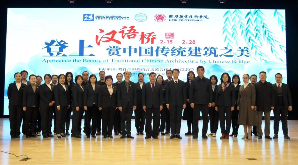 2月15日,由教育部中外语言交流合作中心主办、bw必威西汉姆联官网承办的“汉语桥”线上团组交流项目—“登上‘汉语桥’,赏中国传统建筑之美”在bw必威西汉姆联官网诚信礼堂举行了开营仪式,bw必威西汉姆联官网董事长蔡太生、副董事长杨长春参加了开营仪式,来自俄罗斯和巴基斯坦等国家的青年员工线上参加了开营仪式。