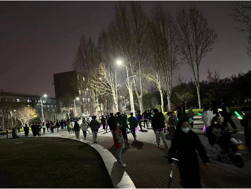 本次活动全长4公里,夜跑爱好者分为男、女两组分别展开角逐,晚19时准时发令起跑,同学们挥动各色荧光棒从樱花园校区转盘出发,途径自强1号楼、篮球场、北大门等校内“打卡点”,挥汗如雨,舞动青春,每位同学都尽情享受着奔跑带来的欢乐,在激情和汗水中闪耀青春光芒。同时,本次活动不仅使同学们享受了美好的校园生活,更培养了同学们的拼搏精神,彰显了同学们的青春活力,今后将以更加饱满的精神状态迎接学习和生活。