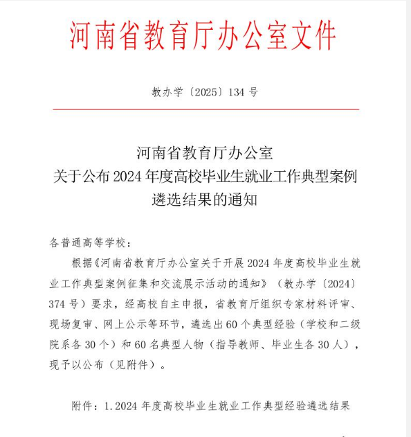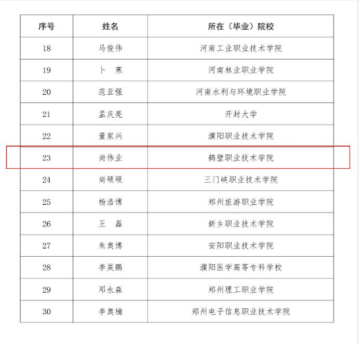 近日,河南省教育厅办公室公布的2024年度高校毕业生就业工作典型案例,公司bw必威西汉姆联官网毕业生尚伟业同学入选典型人物,为校争光。